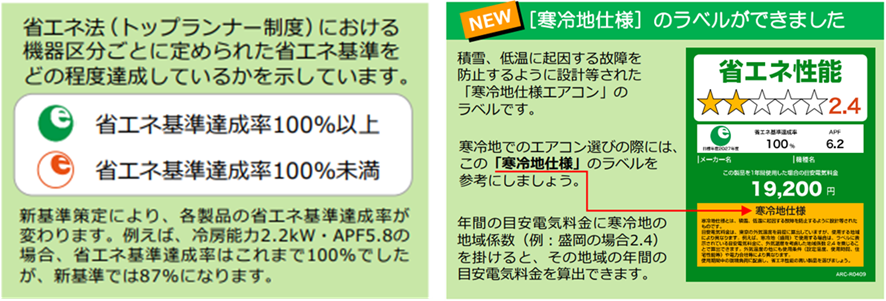 数値が大きいほど省エネ性が高く、容量によってAPF基準は定められています