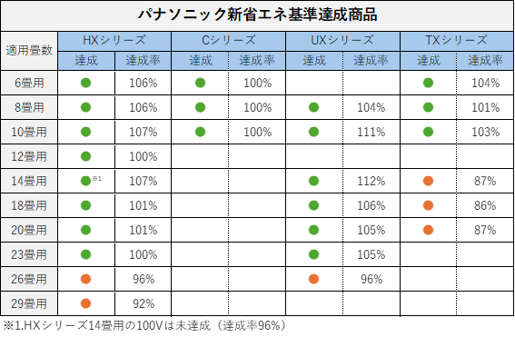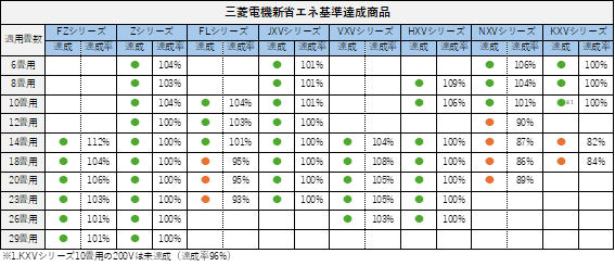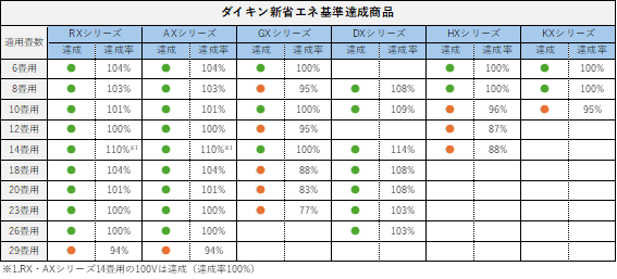 例)6畳用クラスで旧基準5.8→新基準6.6に引き上げしています